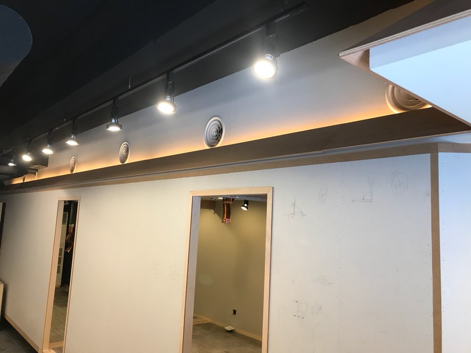 기존 파티션 프레임은 간접조명으로 살려주었구요.