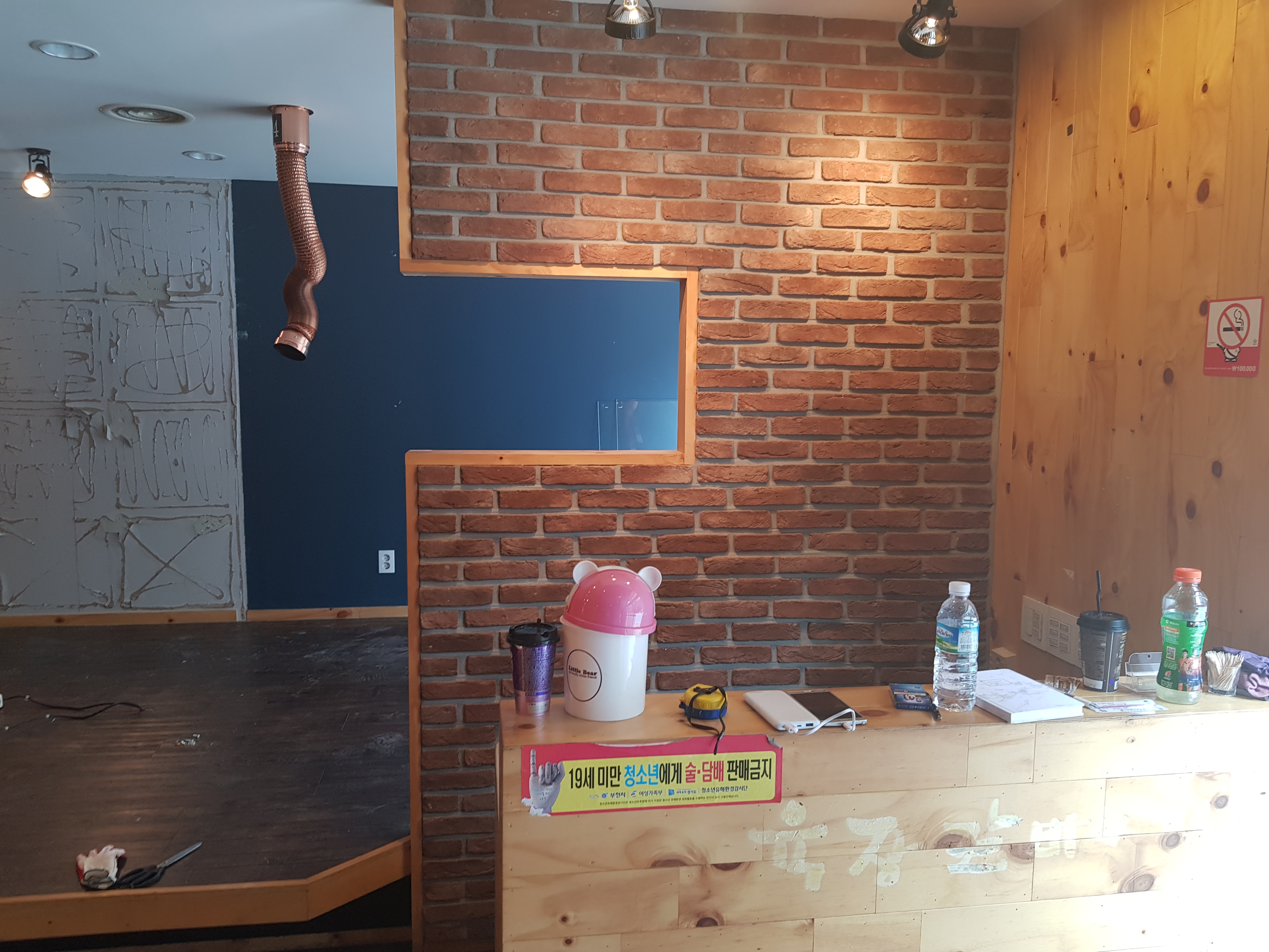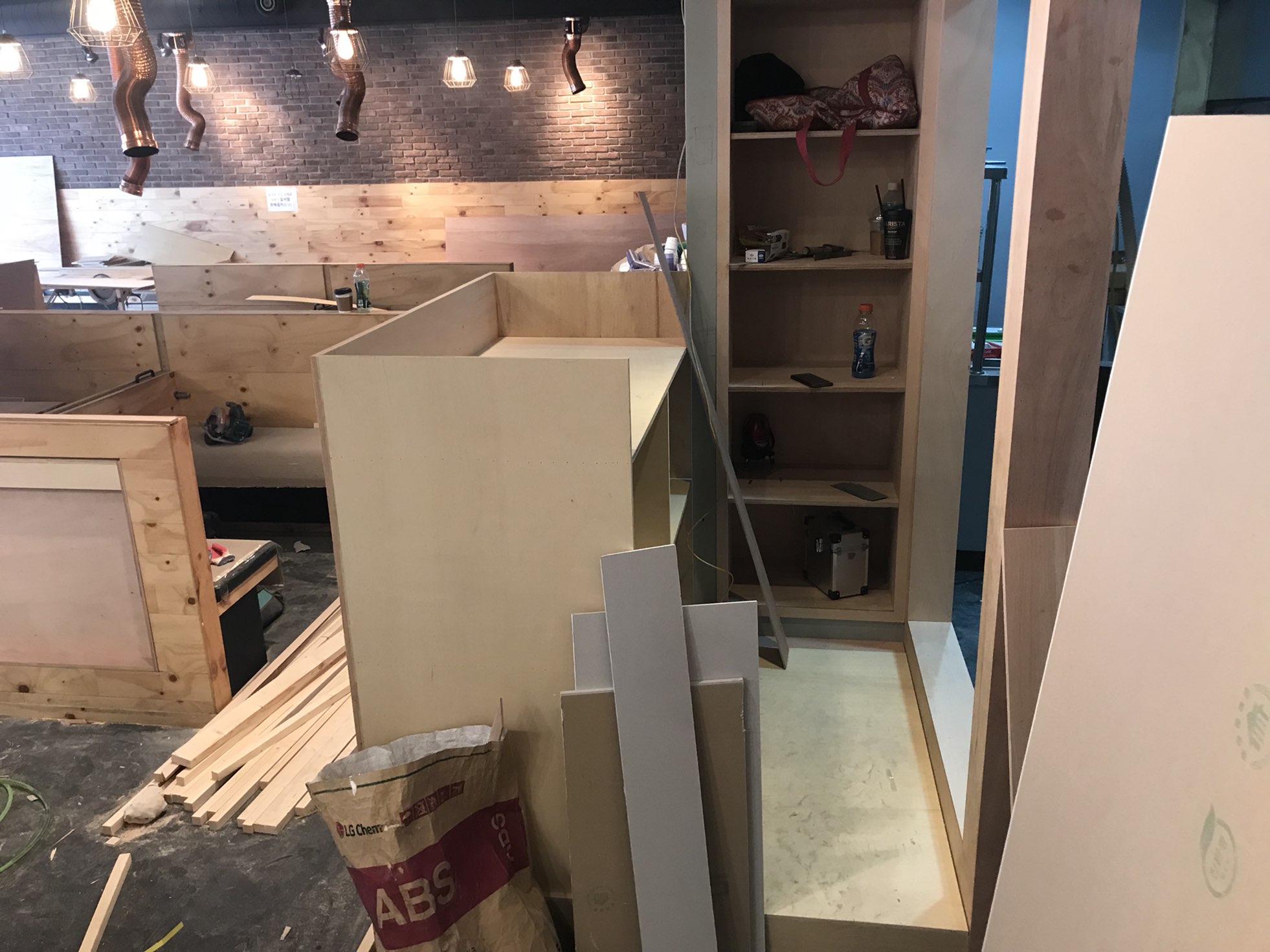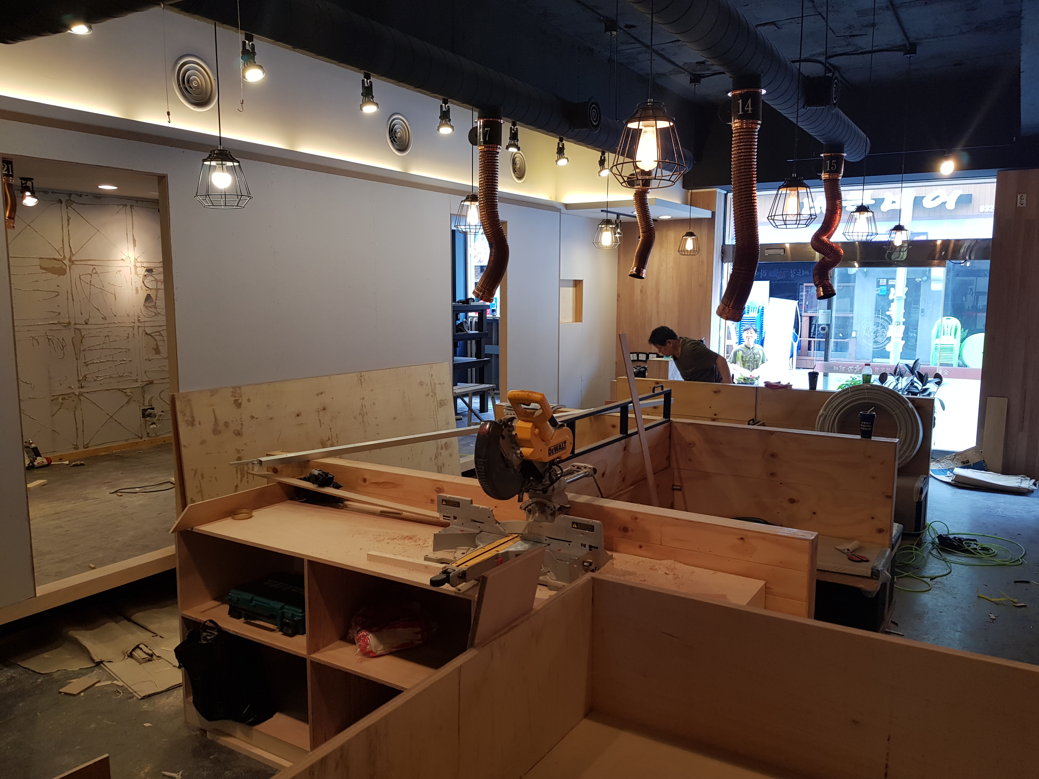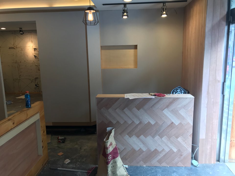 기존 매장 철거 후 목공 공사부터 시작했어요.
