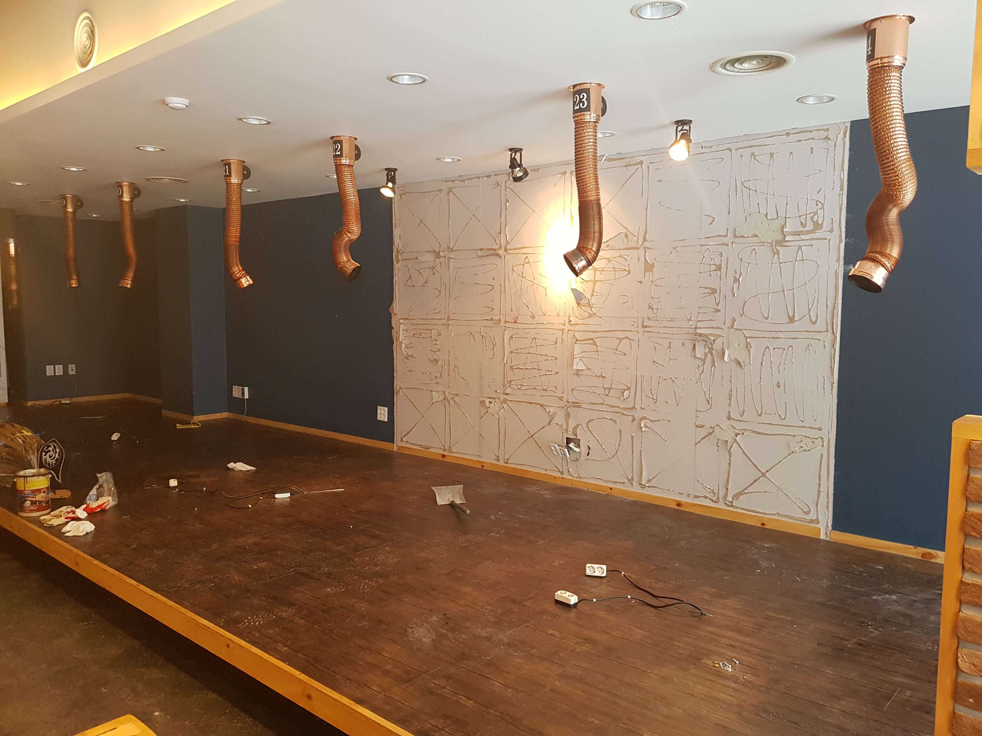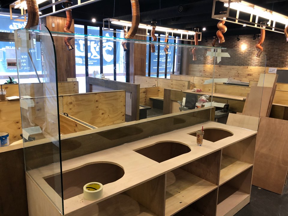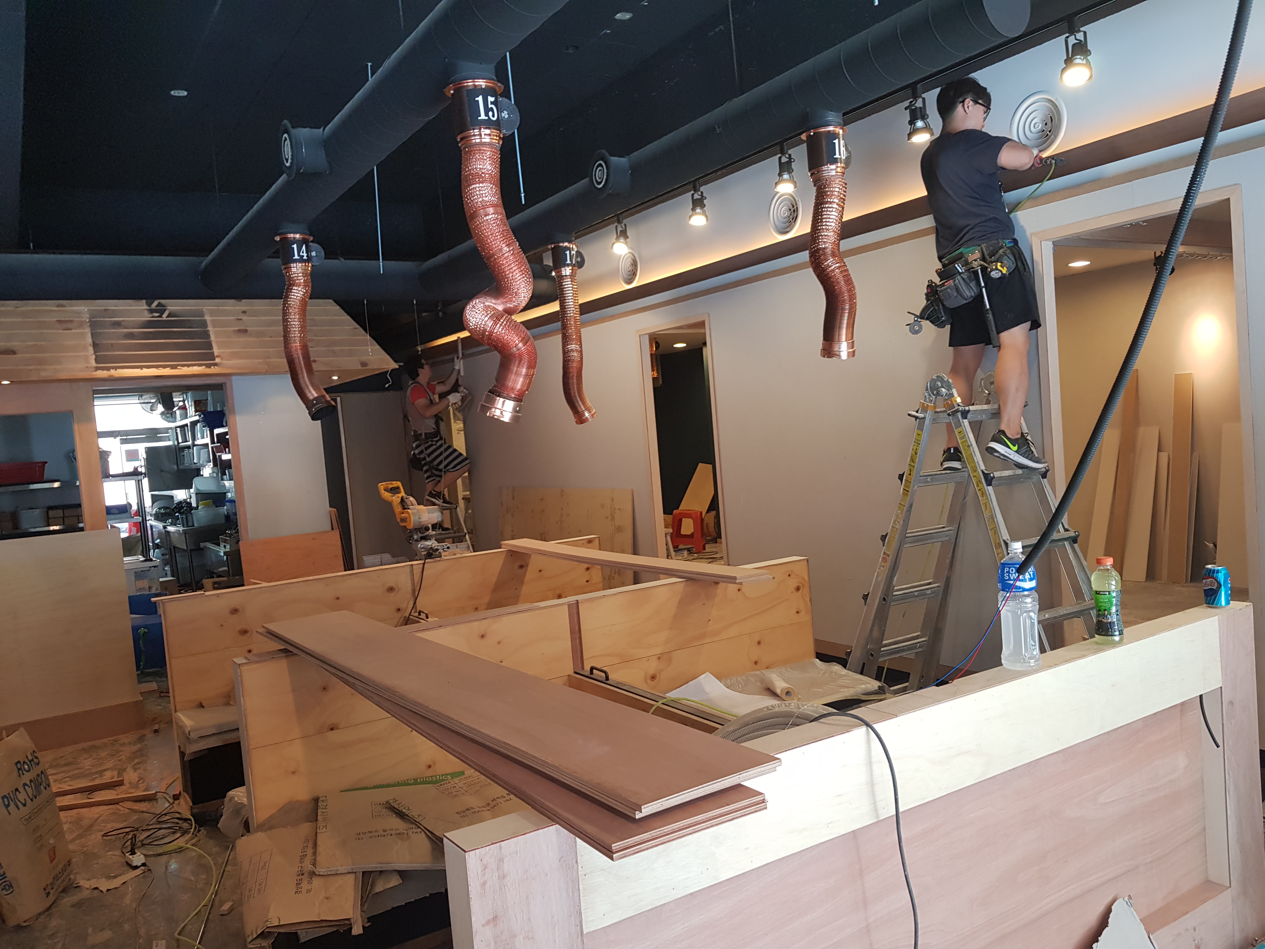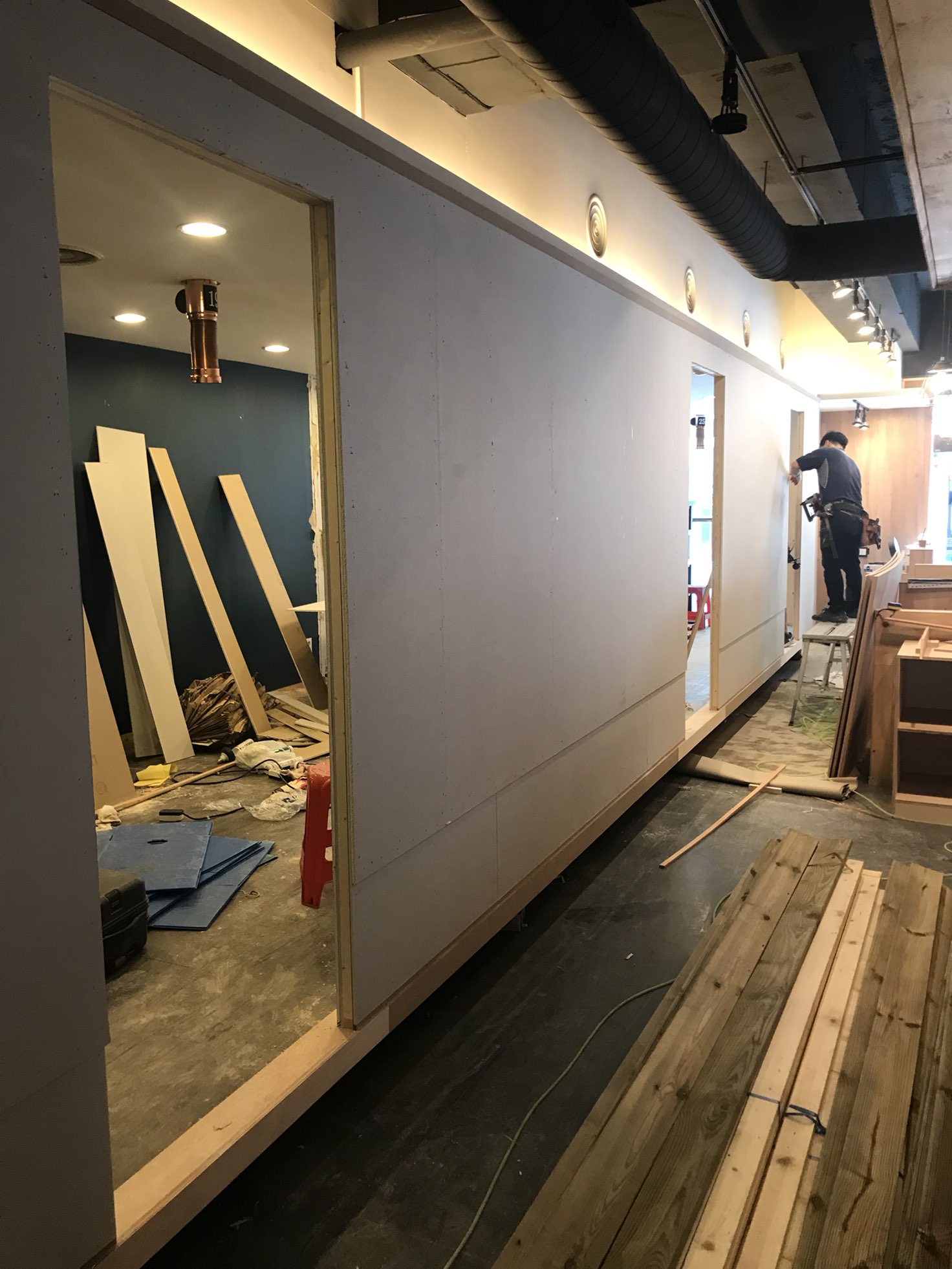 기존 매장 철거 후 목공 공사부터 시작했어요.
