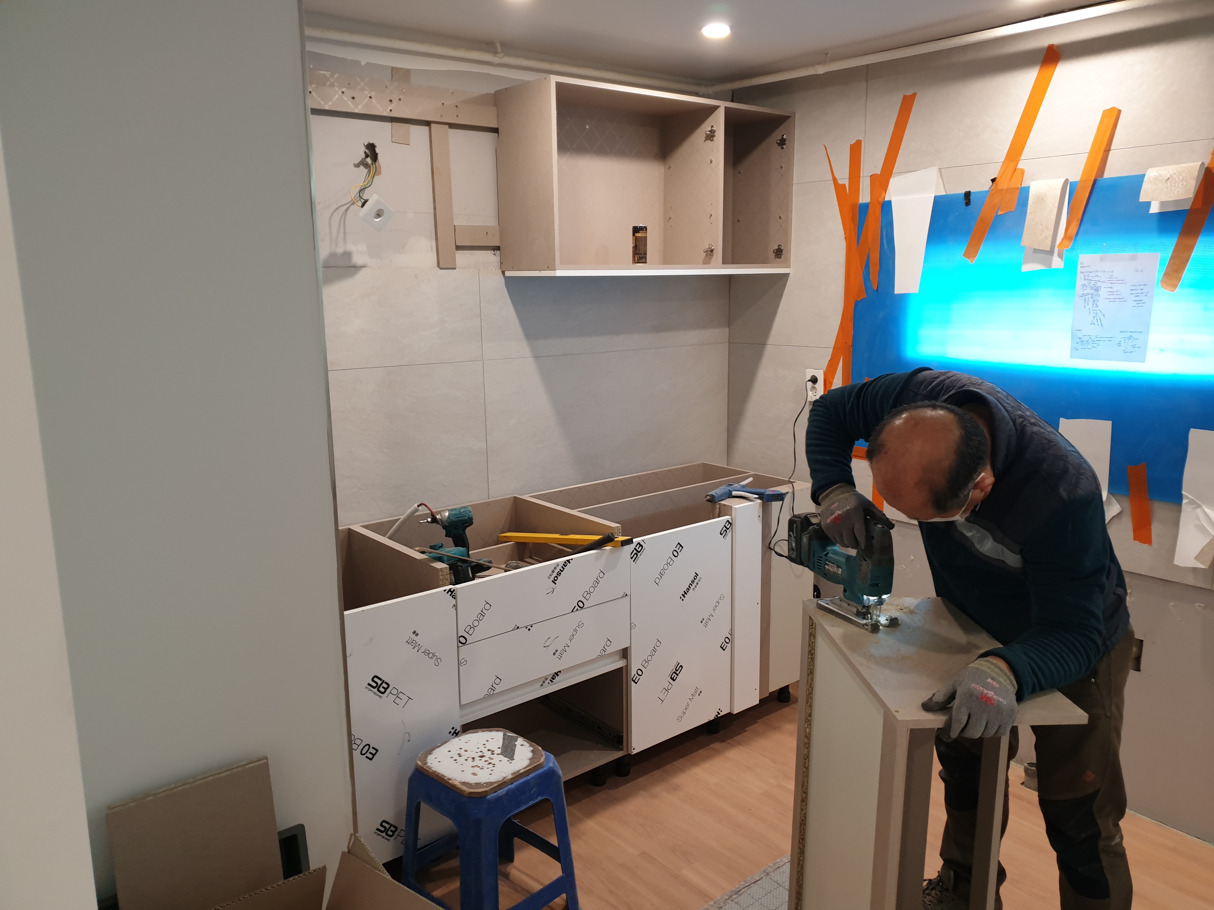 기존 바닥 수평몰탈 작업 후 붙박이 가구 시공해 드렸어요.