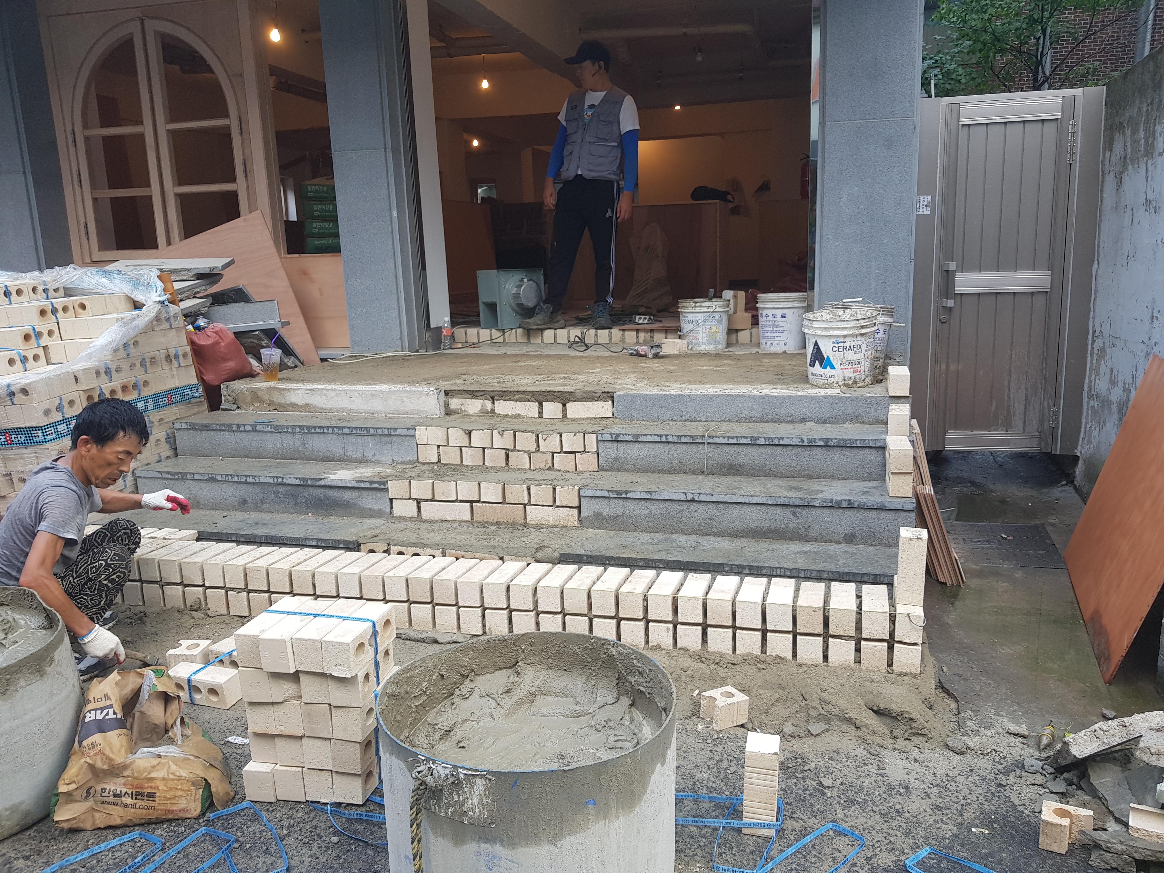 최대한 수평을 맞춰 벽돌 하나하나 작업 하였습니다.